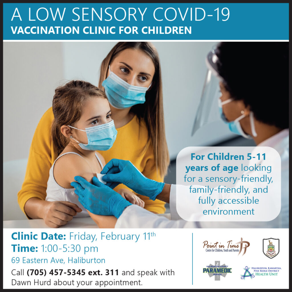 Point in Time is offering a low sensory vaccination clinic for children 5-11 years of age.